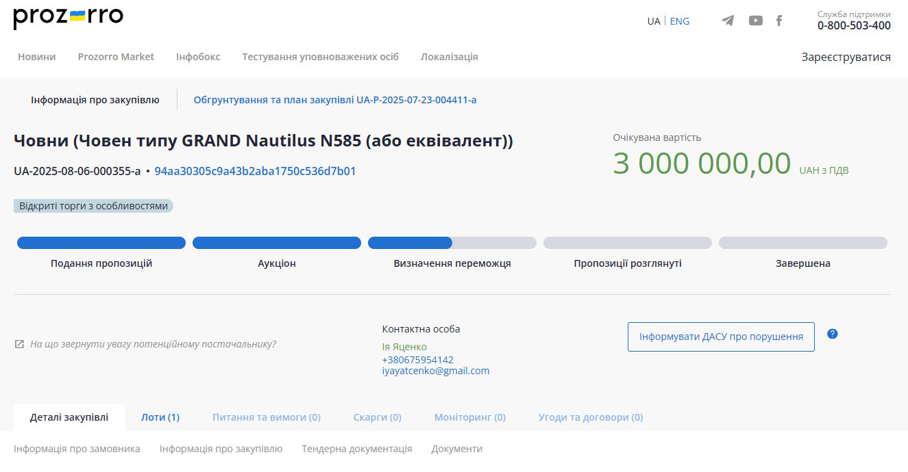 Відповідна інформація про оголошення про тендер розміщена на сайті електронних закупівель Prozorro .