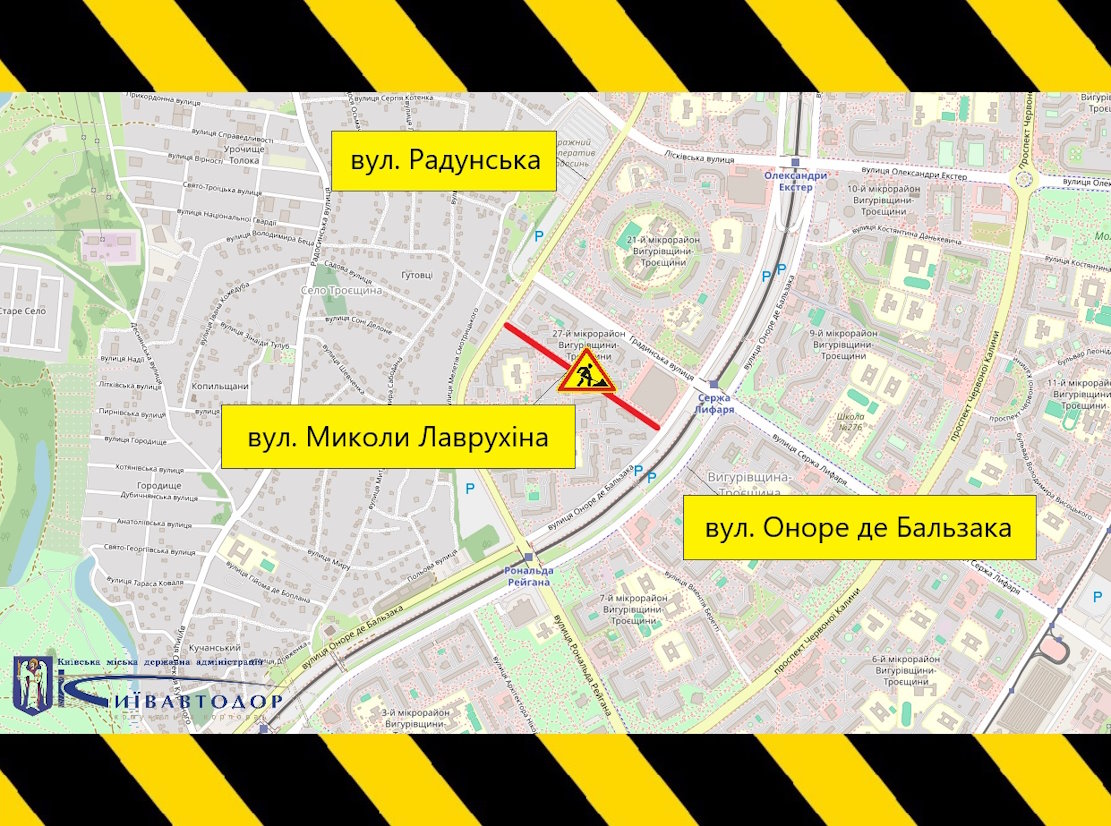 Від сьогодні до кінця жовтня рух транспорту в Деснянському районі столиці, на вулиці Миколи Лаврухіна, буде ускладнено через ремонтні роботи.