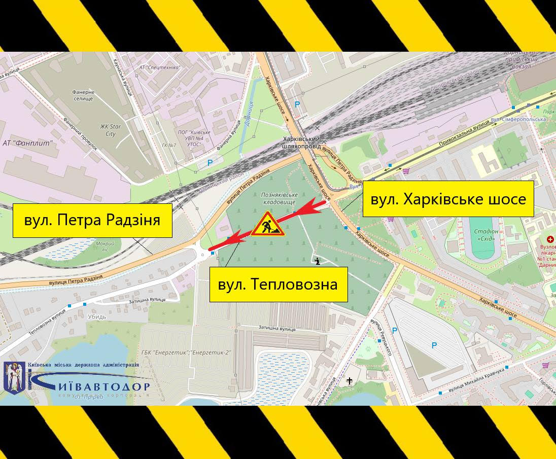 Починаючи з сьогоднішнього ранку, рух транспорту в Дарницькому районі Києва буде частково обмежено протягом кількох годин вздовж маршруту від вулиці Тепловозної до її перетину з Харківським шосе.