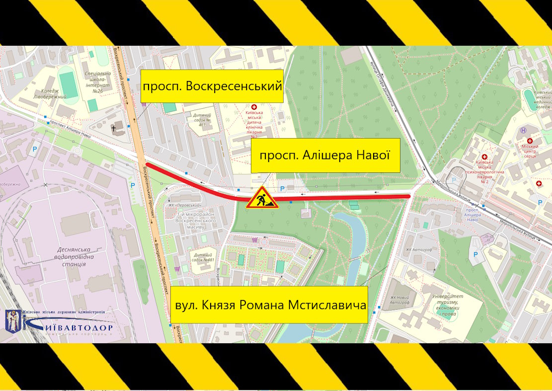 «З 1 по 15 жовтня буде частково обмежено рух транспорту на проспекті Алішера Навої, на ділянці від проспекту Воскресенського до вулиці Князя Романа Мстиславича», – йдеться у повідомленні.