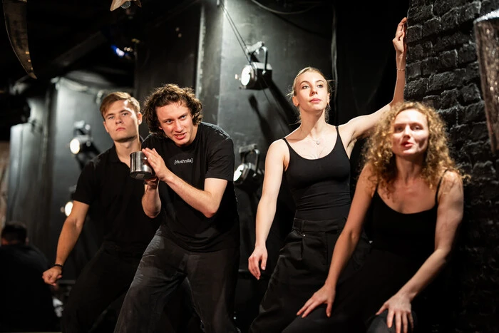 «У Золотих Воротах саме такий простір є, є підвал. Цікаво було пофантазувати про перші кабаре в Німеччині. Коли режисери ввечері мали вистави у великому драматичному театрі, а потім усі спускалися в підвал і давали пародійну виставу на власні постановки. Тому я хотіла поекспериментувати з формою. Уявити, що це якась хуліганська територія, де матеріал звучав би гостро та соціально», – каже Оксана Дмитрієва.