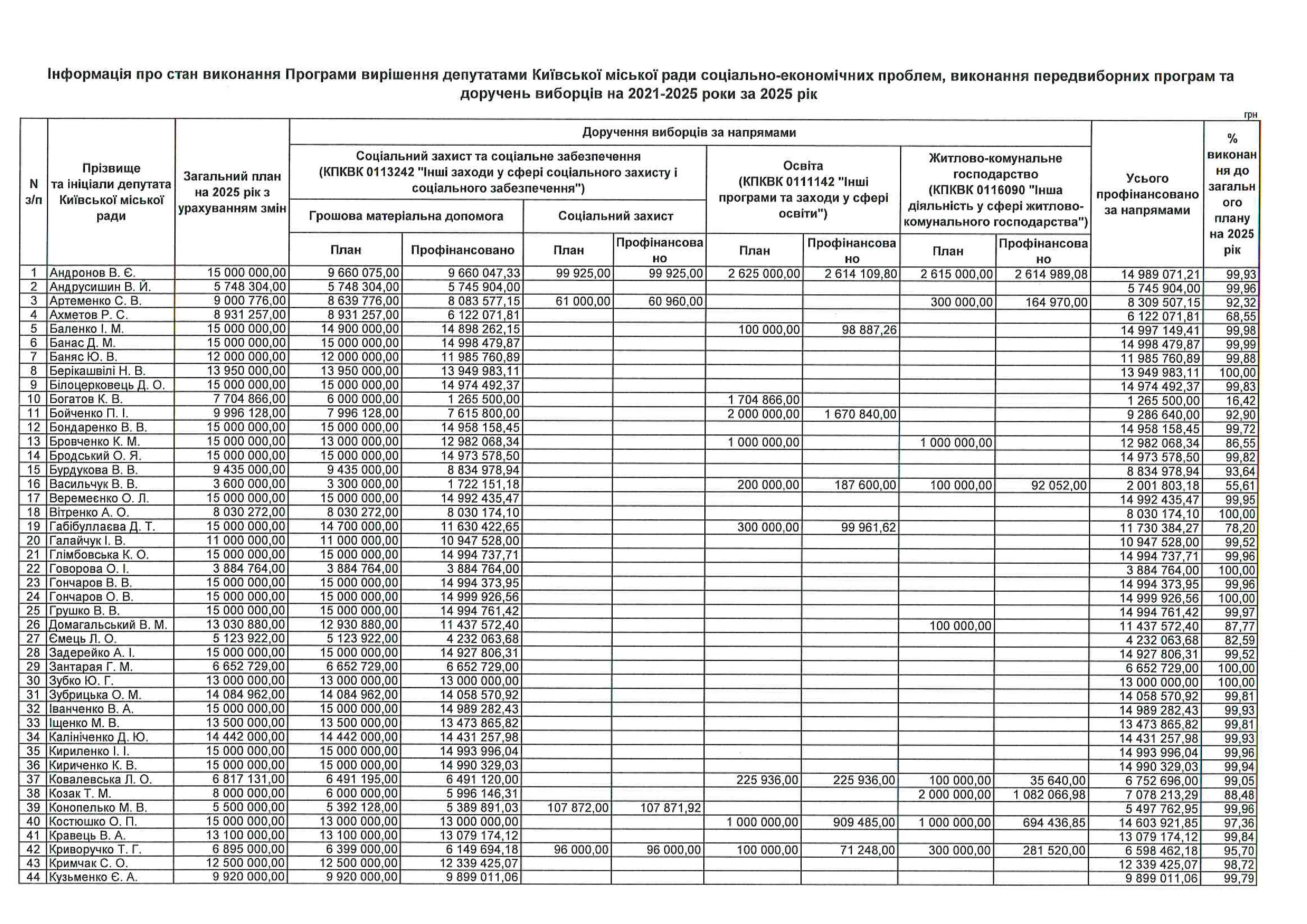 Інформація про стан виконання Програми вирішення депутатами Київської міської ради соціально-економічних проблем, виконання передвиборних програм та доручень виборців на 2021–2025 роки за 2025 рік
