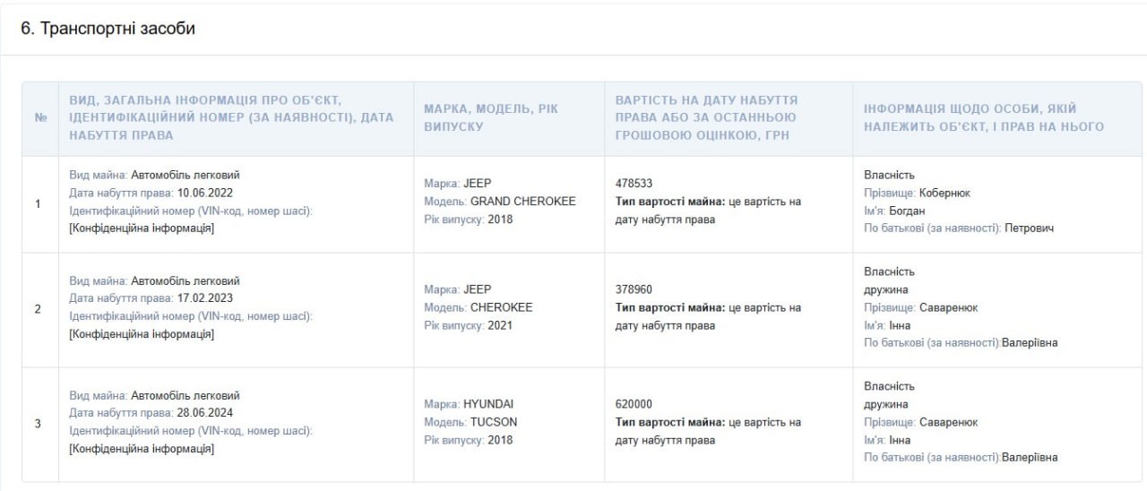 Богдан Кобернюк очолює комунальне підприємство з ремонту та утримання доріг Києва. Що у нього в гаманці? З декларації видно, що вітер у кишенях не ходить. Готівкою має 1 мільйон 100 тисяч гривень, 20 тисяч євро та 28 тисяч доларів США. Богдан Петрович їздить на власному JEEP GRAND CHEROKEE. Придбаний у 2022 році за 478 тисяч 533 гривні. Його дружина також віддає перевагу JEEP CHEROKEE, вона також володіє HYUNDAI TUCSON (придбаний у 2024 році за 620 тисяч гривень).