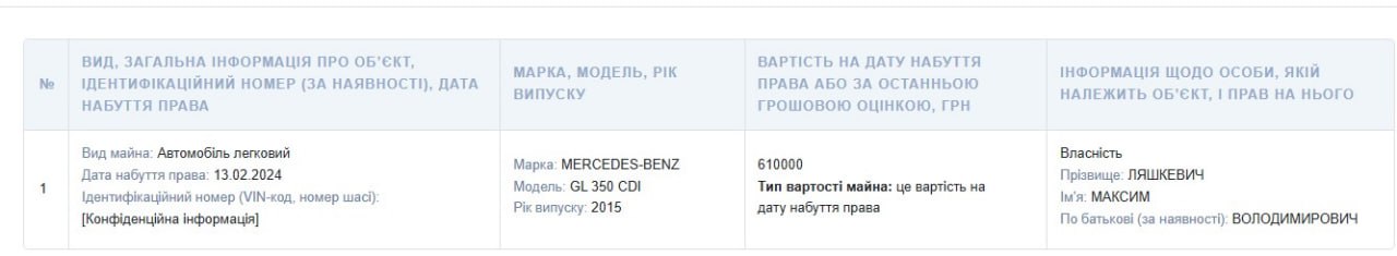 Річна зарплата Ляшкевича на підприємстві «Київкомунсервіс» становила 1 мільйон 739 тисяч 654 гривні.