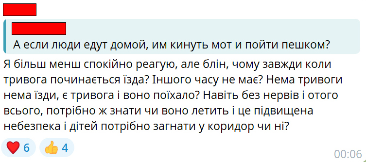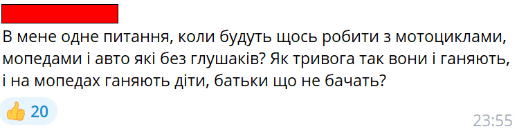 «На жаль, це рішення (заборонити транспортні засоби з гучними вихлопними газами, – ред. ) досі ігнорується деякими учасниками дорожнього руху, особливо в житлових районах. Прошу посилити контроль за рівнем шуму на дорогах столиці, що покращить умови життя в нашому місті, особливо в умовах воєнного стану», – написав автор петиції.