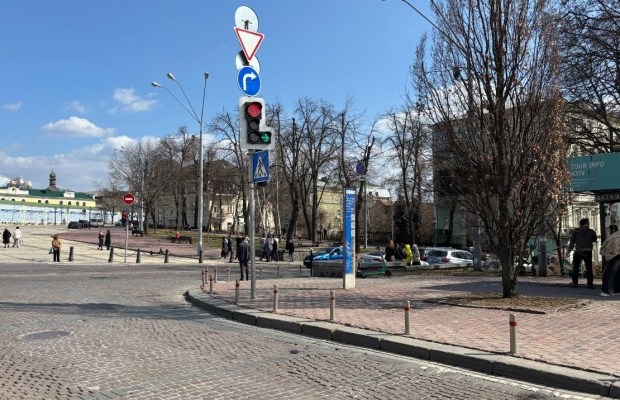 На Михайлівській площі у Києві встановили перший світлофор із червоним колом заборони